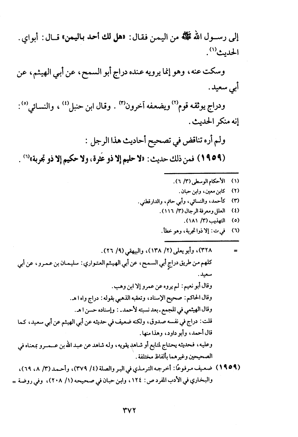 (1959) فَمن ذَلِك حَدِيث: " لَا حَلِيم إِلَّا ذُو عثره وَلَا حَكِيم إِلَّا ذُو تجربة ".