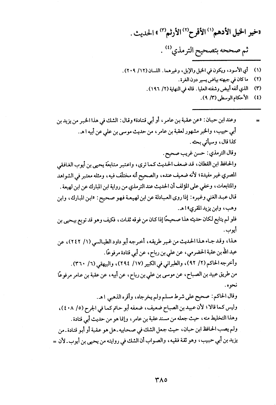 " خير الْخَيل الأدهم الأقرح الأرثم " الحَدِيث.