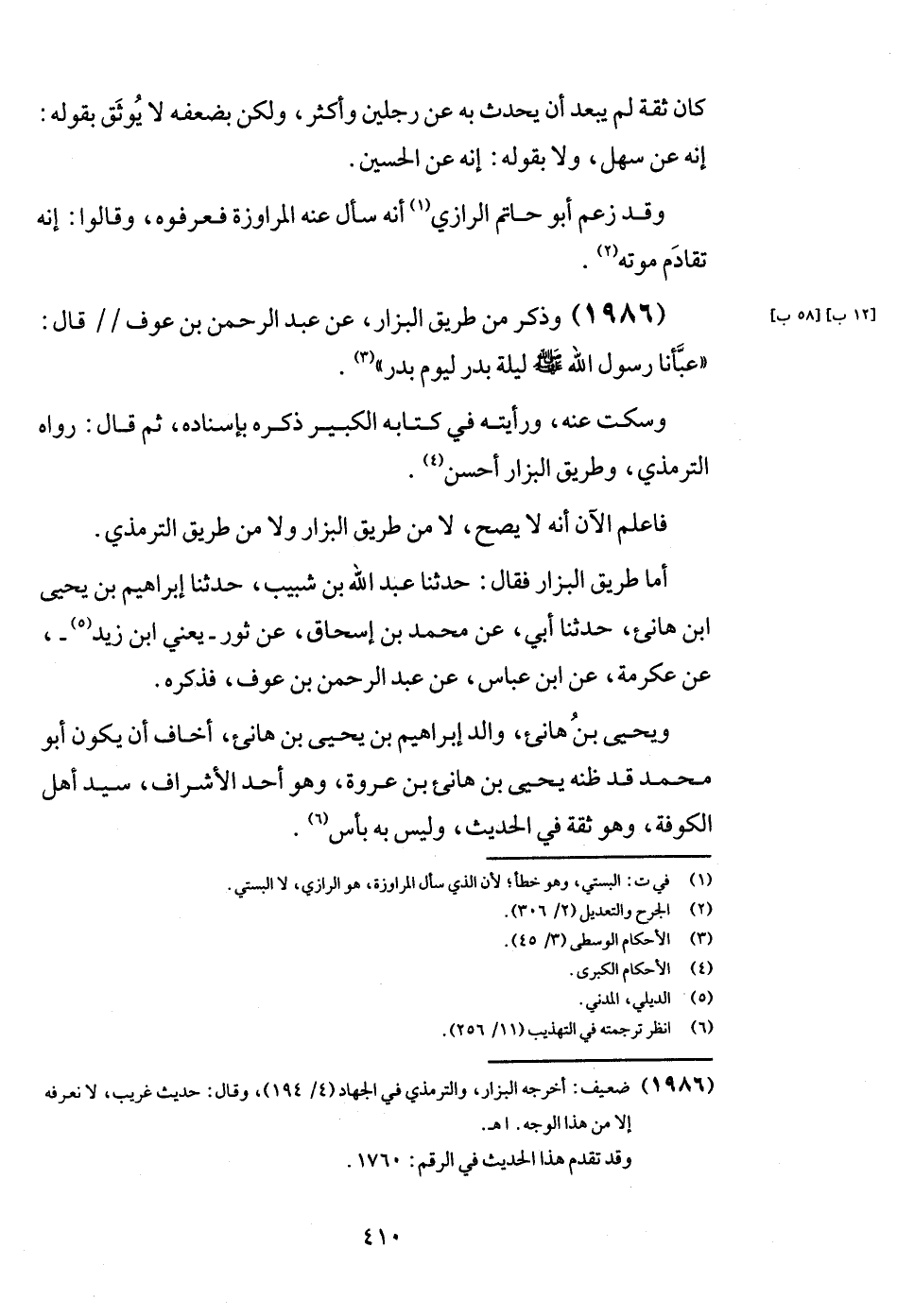 (1986) وَذكر من طَرِيق الْبَزَّار، عَن عبد الرَّحْمَن بن عَوْف قَالَ: " عبأنا رَسُول الله - صَلَّى اللَّهُ عَلَيْهِ وَسَلَّم َ - لَيْلَة بدر ليَوْم بدر ".