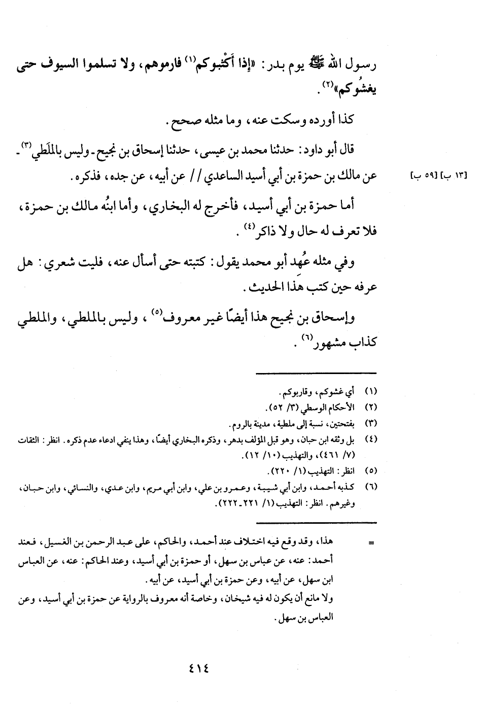 قَالَ أَبُو دَاوُد: حَدثنَا مُحَمَّد بن عِيسَى، حَدثنَا إِسْحَاق بن نجيح - وَلَيْسَ بالملطي - عَن مَالك بن حَمْزَة بن أبي أسيد السَّاعِدِيّ عَن أَبِيه، عَن جده، فَذكره.