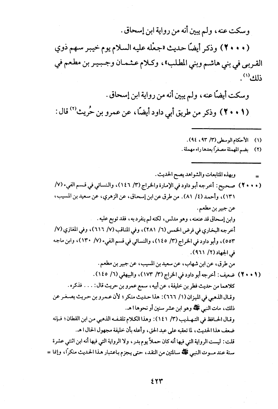(2000) وَذكر أَيْضا حَدِيث " جعله عَلَيْهِ السَّلَام يَوْم خَيْبَر سهم ذَوي الْقُرْبَى فِي بني هَاشم وَبني الْمطلب "، وَكَلَام عُثْمَان وَجبير بن مطعم فِي ذَلِك.