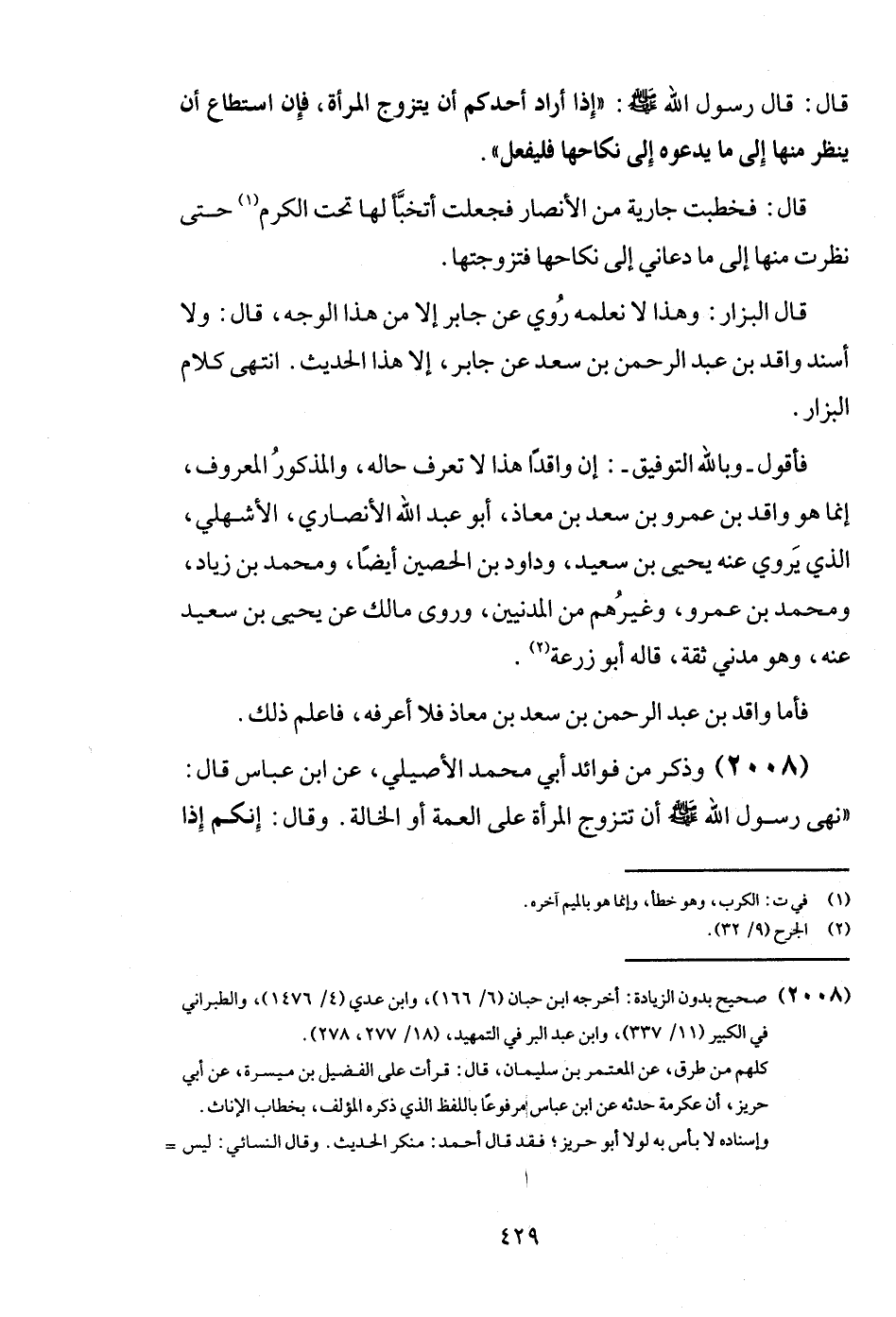 قَالَ الْبَزَّار: وَهَذَا لَا نعلمهُ رُوِيَ عَن جَابر إِلَّا من هَذَا الْوَجْه، قَالَ: وَلَا أسْند وَاقد بن عبد الرَّحْمَن بن سعد عَن جَابر، إِلَّا هَذَا الحَدِيث. انْتهى كَلَام الْبَزَّار.