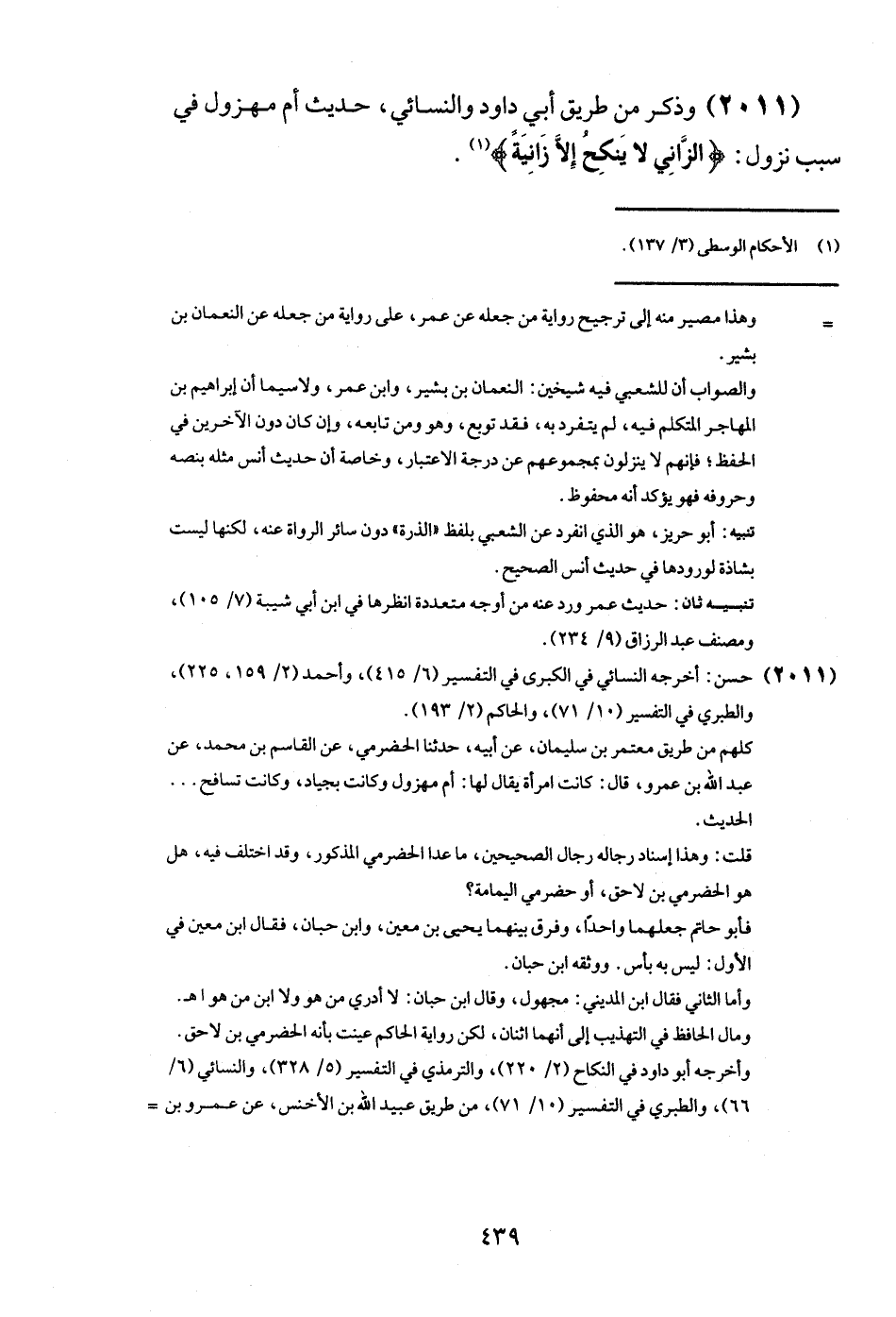 (2011) وَذكر من طَرِيق أبي دَاوُد وَالنَّسَائِيّ، حَدِيث أم مهزول فِي سَبَب نزُول: {الزَّانِي لَا ينْكح إِلَّا زَانِيَة} .