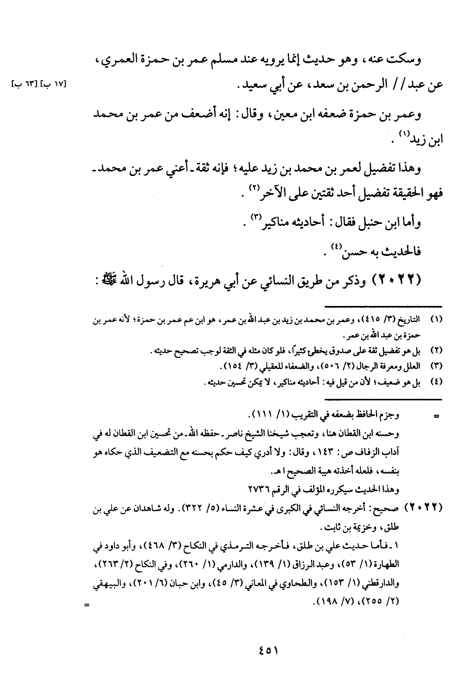 وَهَذَا تَفْضِيل لعمر بن مُحَمَّد بن زيد عَلَيْهِ؛ فَإِنَّهُ ثِقَة - أَعنِي عمر بن مُحَمَّد - فَهُوَ الْحَقِيقَة تَفْضِيل أحد ثقتين على الآخر.