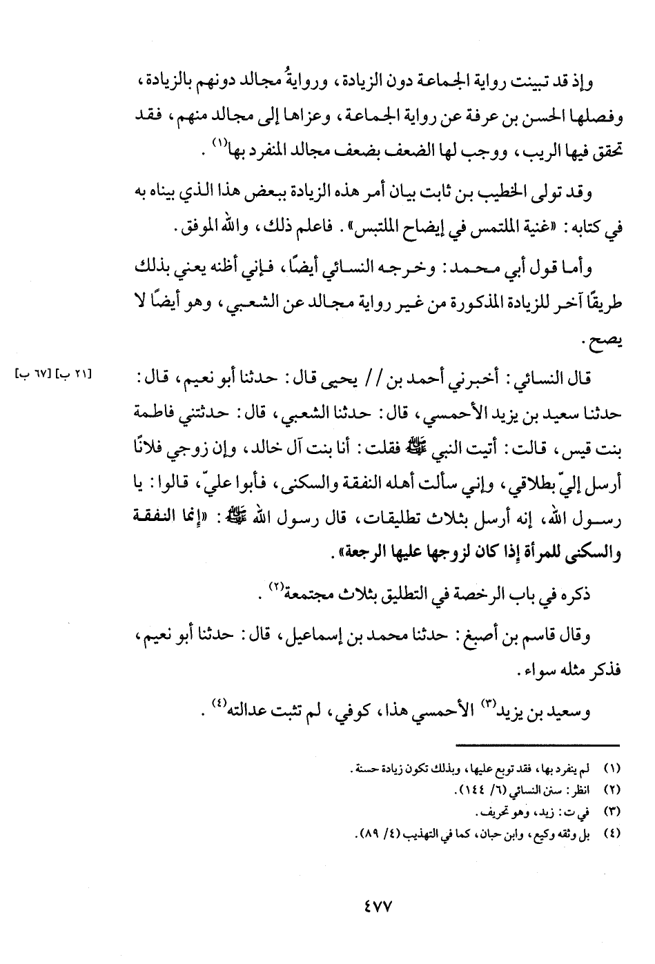 وَأما قَول أبي مُحَمَّد: وخرجه النَّسَائِيّ أَيْضا، فَإِنِّي أَظُنهُ يَعْنِي بذلك طَرِيقا آخر للزِّيَادَة الْمَذْكُورَة من غير رِوَايَة مجَالد عَن الشّعبِيّ، وَهُوَ أَيْضا لَا يَصح.