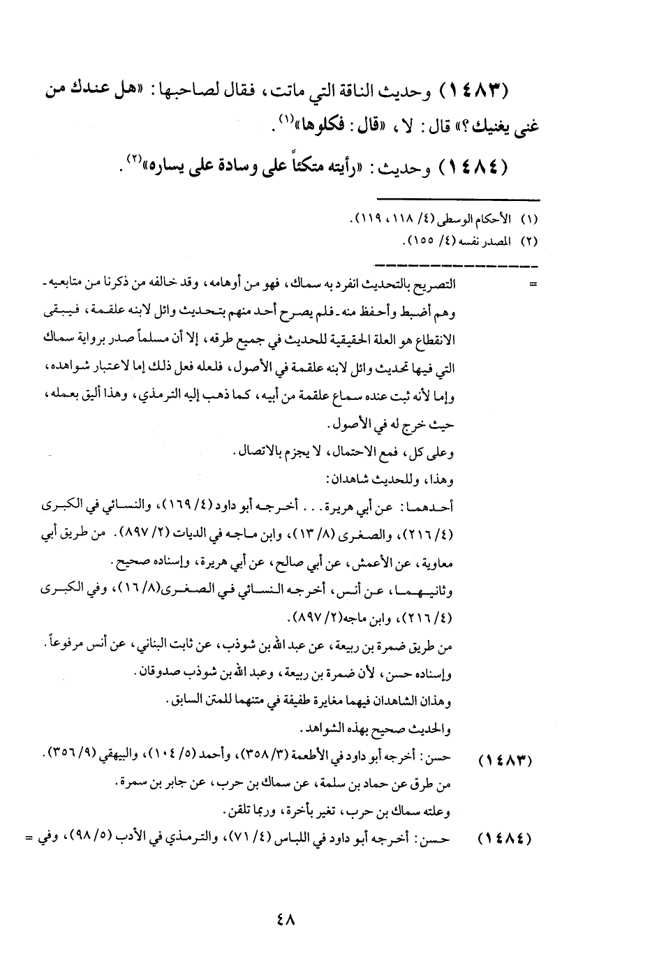 (1483) وَحَدِيث النَّاقة الَّتِي مَاتَت، فَقَالَ لصَاحِبهَا: " هَل عنْدك من غنى يُغْنِيك؟ " قَالَ: لَا، " قَالَ: فكلوها ".