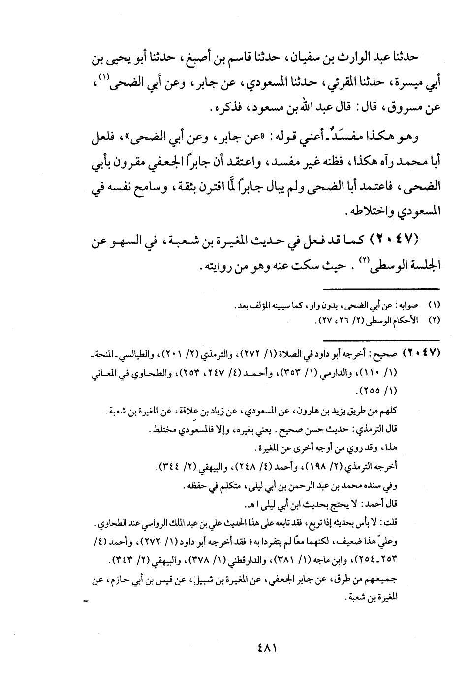 (2047) كَمَا قد فعل فِي حَدِيث الْمُغيرَة بن شُعْبَة، فِي السَّهْو عَن الجلسة الْوُسْطَى. حَيْثُ سكت عَنهُ وَهُوَ من رِوَايَته.