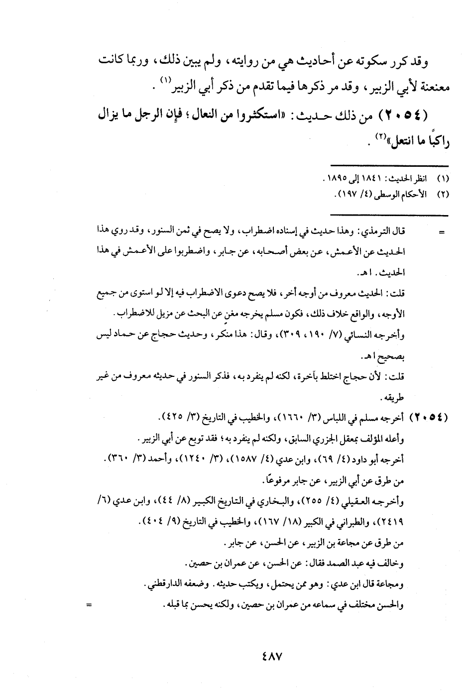 (2054) من ذَلِك حَدِيث: " استكثروا من النِّعَال؛ فَإِن الرجل مَا يزَال رَاكِبًا مَا انتعل ".