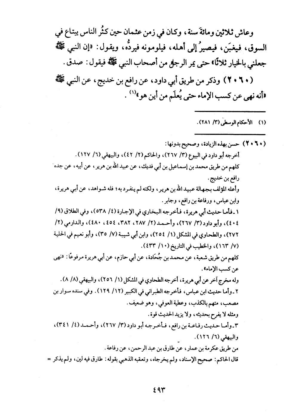 (2060) وَذكر من طَرِيق أبي دَاوُد، عَن رَافع بن خديج، عَن النَّبِي - صَلَّى اللَّهُ عَلَيْهِ وَسَلَّم َ - " أَنه نهى عَن كسب الْإِمَاء حَتَّى يعلم من أَيْن هُوَ ".
