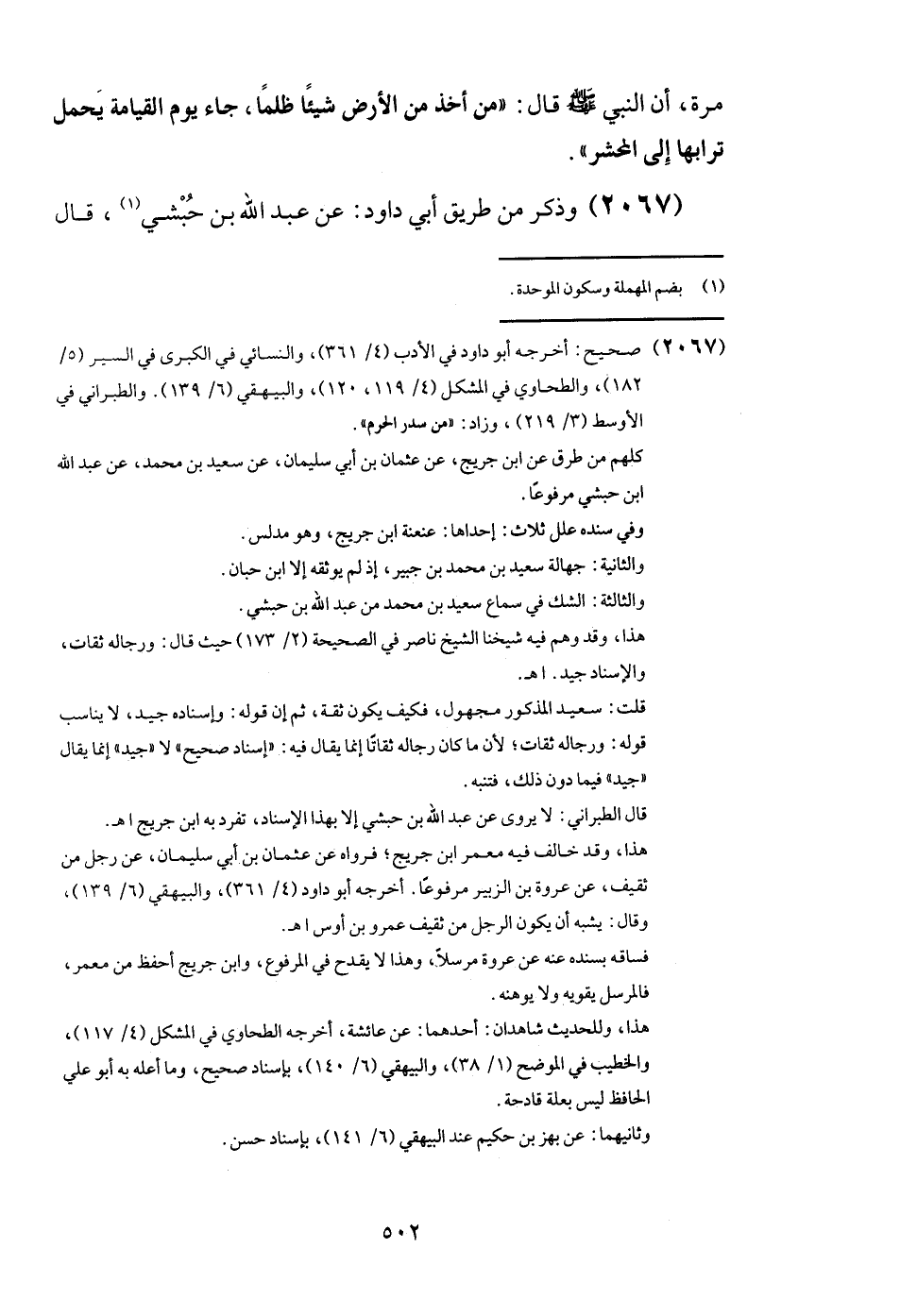 (2067) وَذكر من طَرِيق أبي دَاوُد: عَن عبد الله بن حبشِي، قَالَ