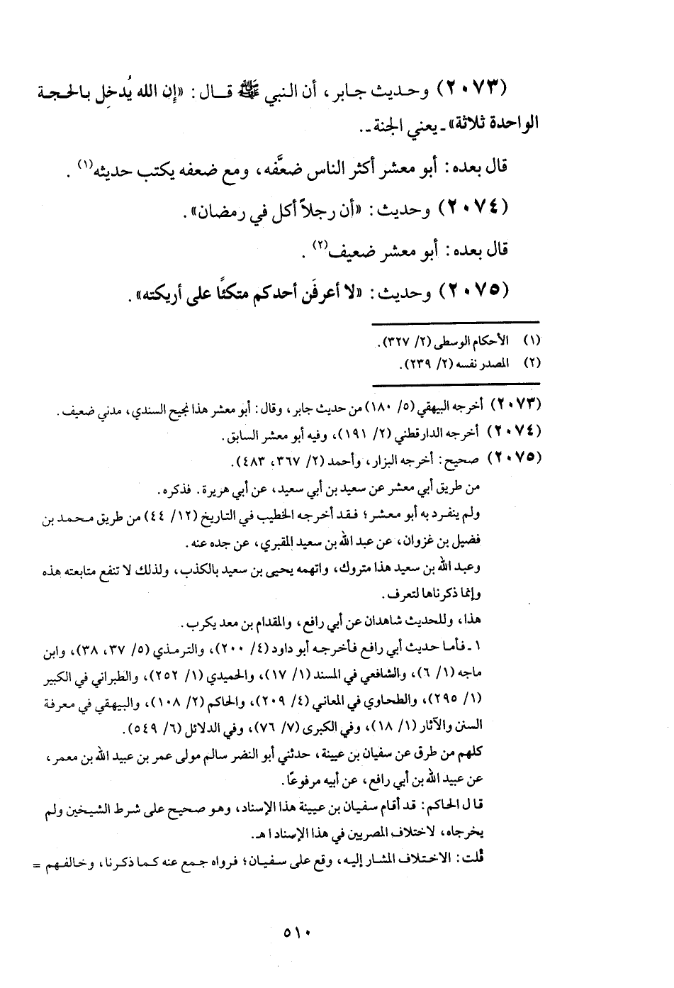 (2075) وَحَدِيث: " لَا أَعرفن أحدكُم مُتكئا على أريكته ".