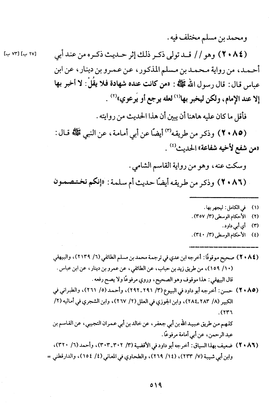 (2084) وَهُوَ قد تولى ذكر ذَلِك إِثْر حَدِيث ذكره من عِنْد أبي أَحْمد، من رِوَايَة مُحَمَّد بن مُسلم الْمَذْكُور، عَن عَمْرو بن دِينَار، عَن ابْن عَبَّاس قَالَ: قَالَ رَسُول الله - صَلَّى اللَّهُ عَلَيْهِ وَسَلَّم َ -: " من كَانَت عِنْده شَهَادَة فَلَا يقل: لَا أخبر بهَا إِلَّا عِنْد الإِمَام، وَلَكِن ليخبر بهَا لَعَلَّه يرجع أَو يرعوي ".