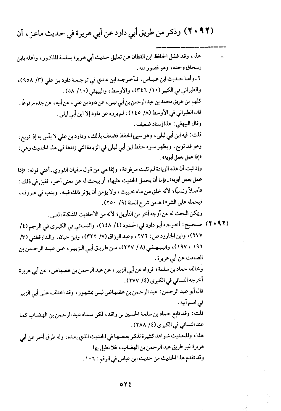 (2092) وَذكر من طَرِيق أبي دَاوُد عَن أبي هُرَيْرَة فِي حَدِيث مَاعِز، أَن