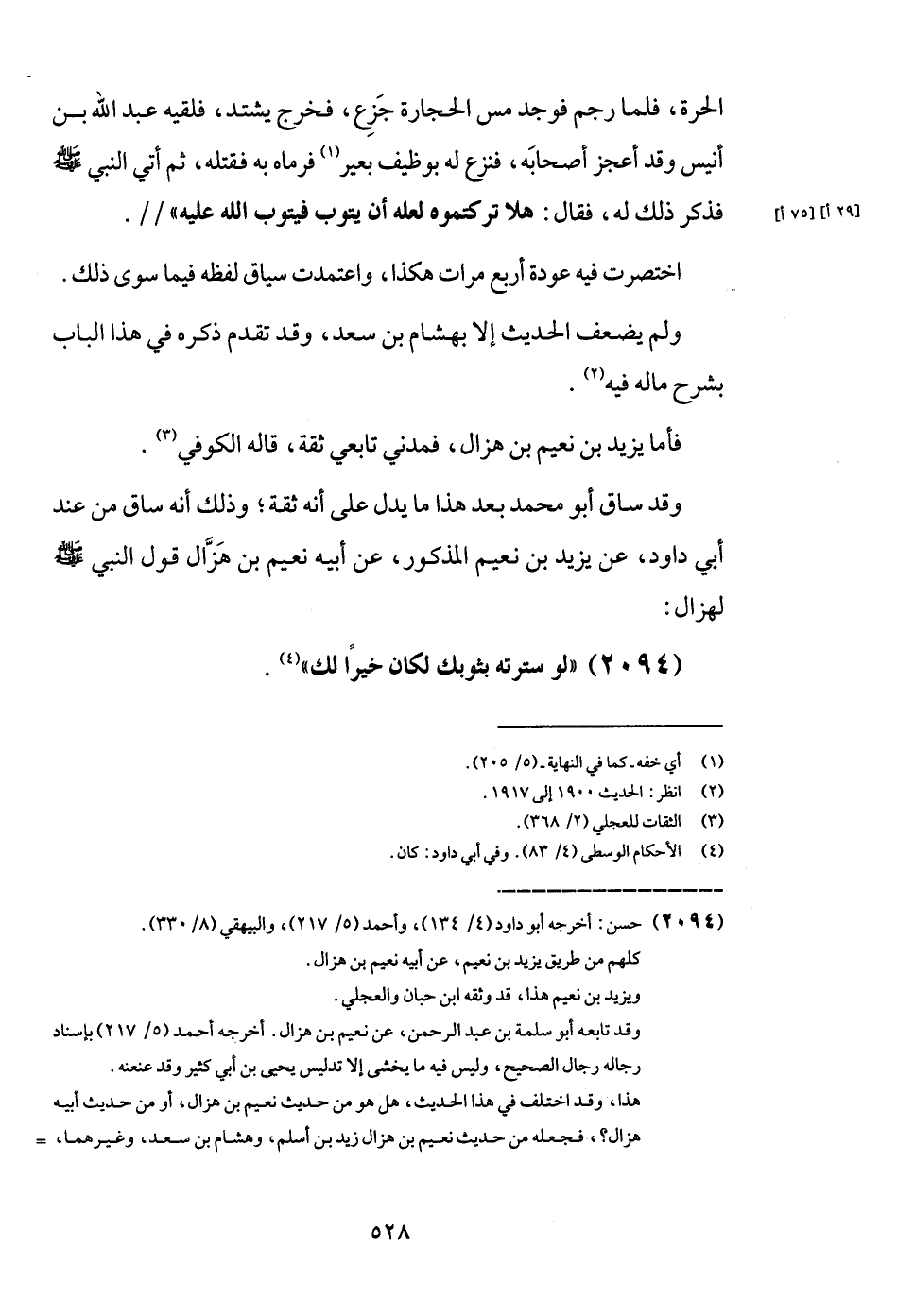 وَقد سَاق أَبُو مُحَمَّد بعد هَذَا مَا يدل على أَنه ثِقَة؛ وَذَلِكَ أَنه سَاق من عِنْد أبي دَاوُد، عَن يزِيد بن نعيم الْمَذْكُور، عَن أَبِيه نعيم بن هزال قَول النَّبِي - صَلَّى اللَّهُ عَلَيْهِ وَسَلَّم َ - لهزال: