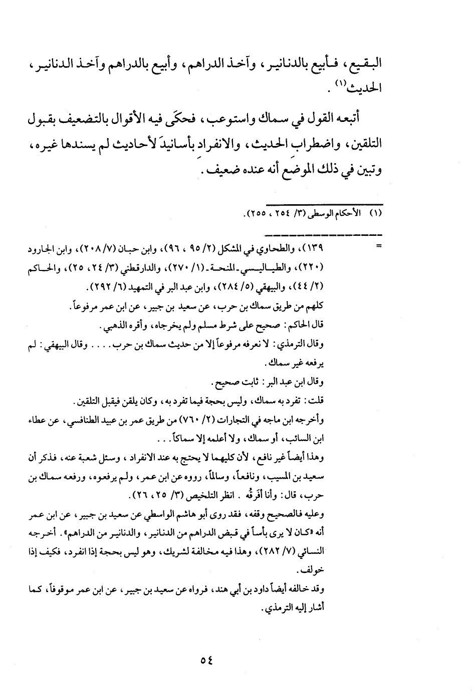 أتبعه القَوْل فِي سماك واستوعب، فَحكى فِيهِ الْأَقْوَال بالتضعيف بِقبُول التَّلْقِين، واضطراب الحَدِيث، والانفراد بأسانيد لأحاديث لم يسندها غَيره، وَتبين فِي ذَلِك الْموضع أَنه عِنْده ضَعِيف.