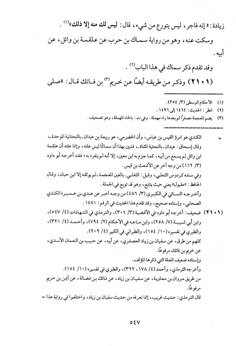 (2101) وَذكر من طَرِيقه أَيْضا عَن خريم بن فاتك قَالَ: " صلى