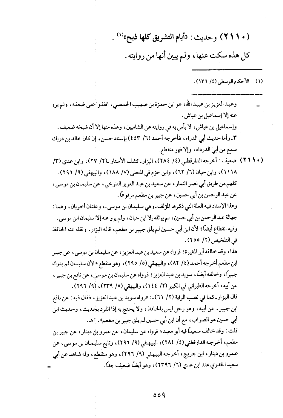 (2110) وَحَدِيث: " أَيَّام التَّشْرِيق كلهَا ذبح ".