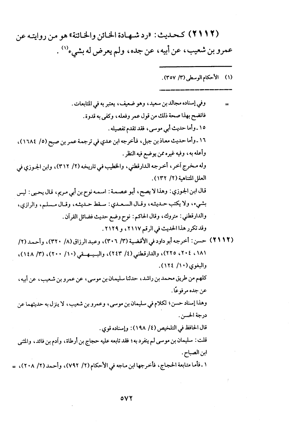 (2112) كَحَدِيث: " رد شَهَادَة الخائن والخائنة " هُوَ من رِوَايَته عَن عَمْرو بن شُعَيْب، عَن أَبِيه، عَن جده، وَلم يعرض لَهُ بِشَيْء.