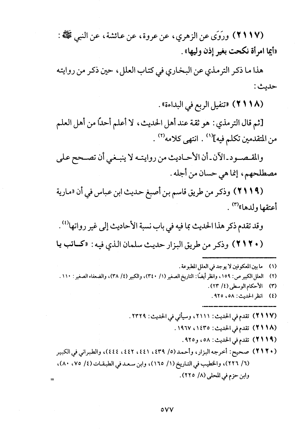 (2117) وروى عَن الزُّهْرِيّ، عَن عُرْوَة، عَن عَائِشَة، عَن النَّبِي - صَلَّى اللَّهُ عَلَيْهِ وَسَلَّم َ -. " أَيّمَا امْرَأَة نكحت بِغَيْر إِذن وَليهَا ".