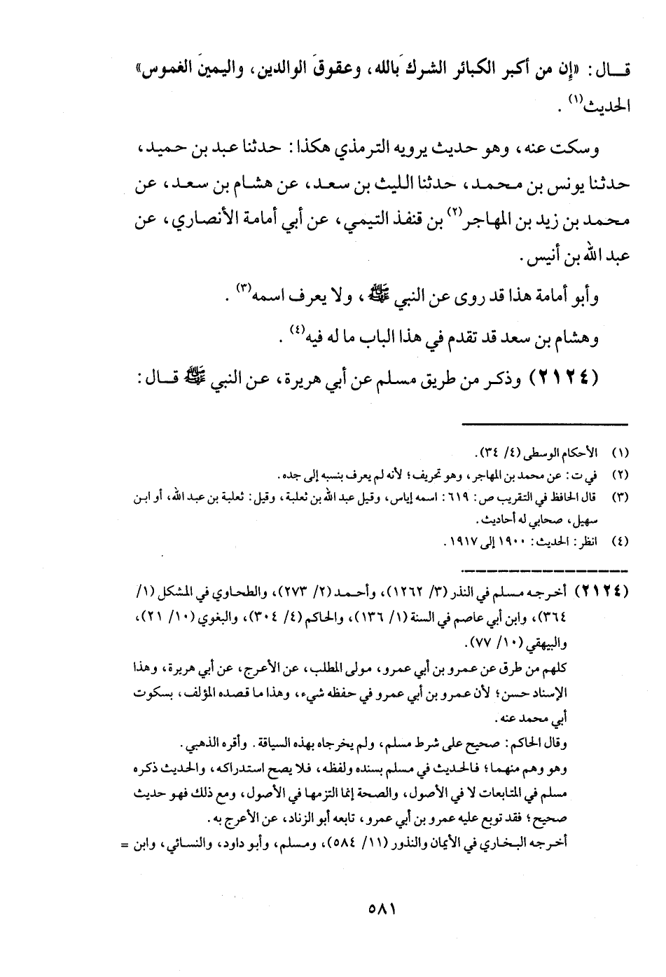 (2124) وَذكر من طَرِيق مُسلم عَن أبي هُرَيْرَة، عَن النَّبِي - صَلَّى اللَّهُ عَلَيْهِ وَسَلَّم َ - قَالَ: