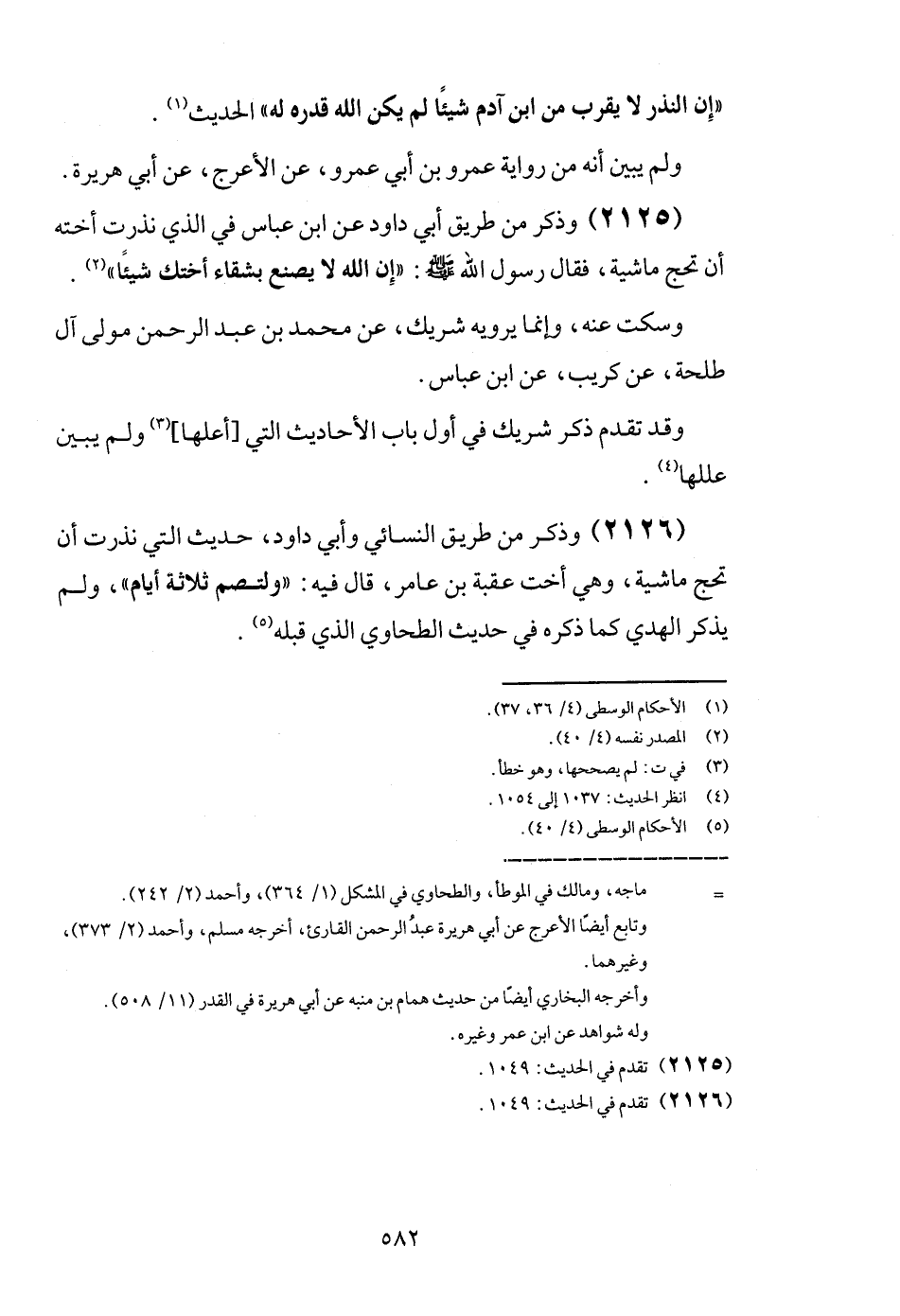 (2126) وَذكر من طَرِيق النَّسَائِيّ وَأبي دَاوُد، حَدِيث الَّتِي نذرت أَن تحج مَاشِيَة، وَهِي أُخْت عقبَة بن عَامر، قَالَ فِيهِ: " ولتصم ثَلَاثَة أَيَّام "، وَلم يذكر الْهَدْي كَمَا ذكره فِي حَدِيث الطَّحَاوِيّ الَّذِي قبله.