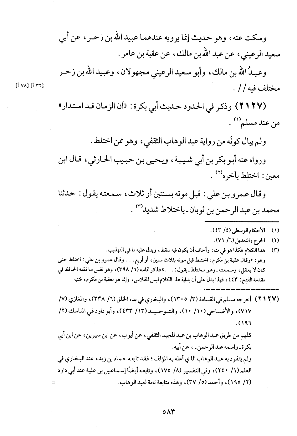 (2127) وَذكر فِي الْحُدُود حَدِيث أبي بكرَة: " أَن الزَّمَان قد اسْتَدَارَ " من عِنْد مُسلم.