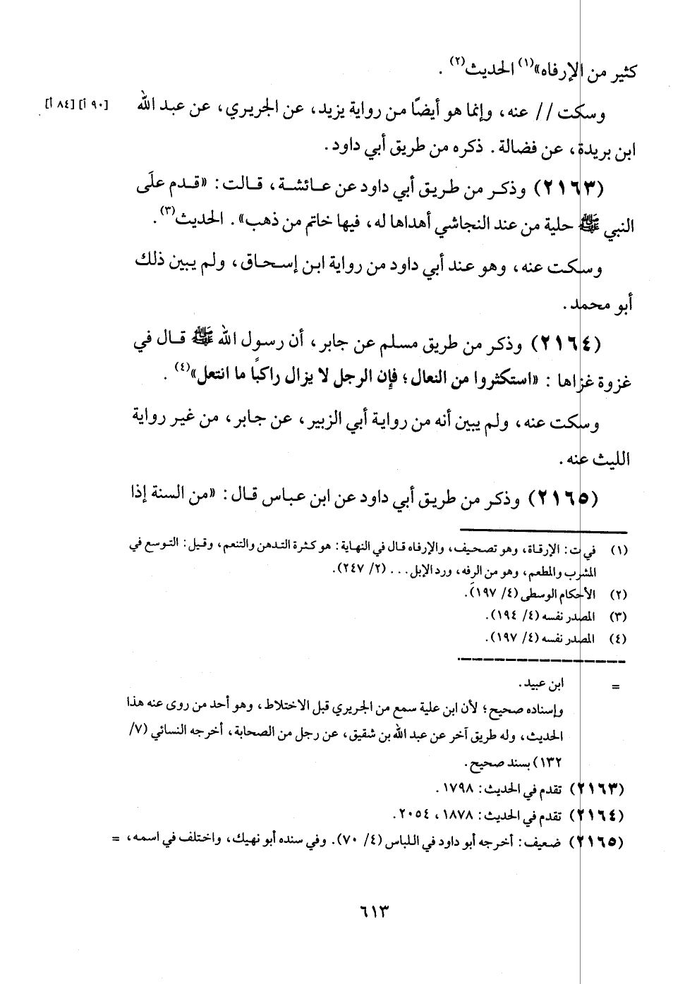 (2164) وَذكر من طَرِيق مُسلم عَن جَابر، أَن رَسُول الله - صَلَّى اللَّهُ عَلَيْهِ وَسَلَّم َ - قَالَ فِي غَزْوَة غَزَاهَا: " استكثروا من النِّعَال؛ فَإِن الرجل لَا يزَال رَاكِبًا مَا انتعل ".