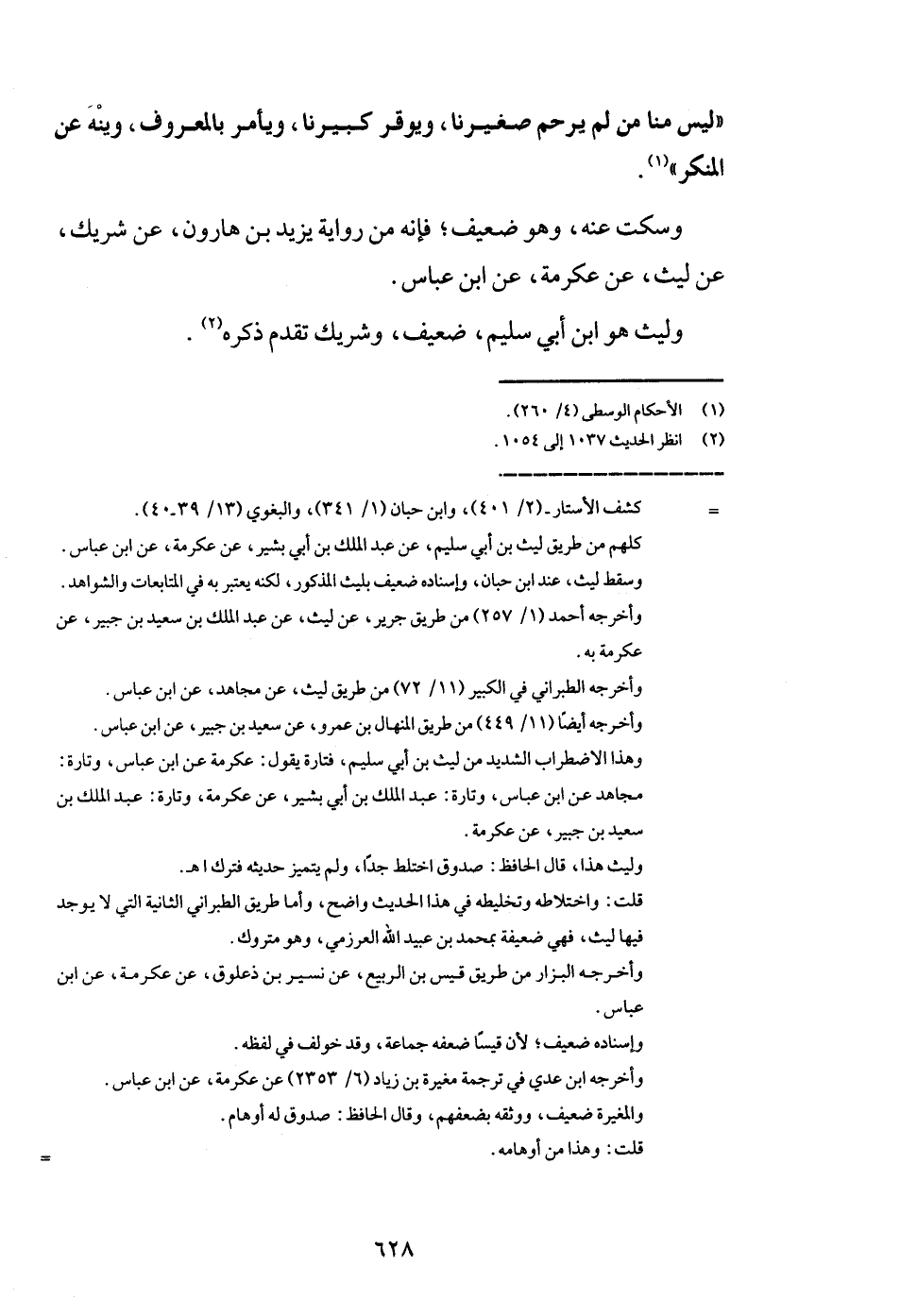 " لَيْسَ منا من لم يرحم صَغِيرنَا، ويوقر كَبِيرنَا، وَيَأْمُر بِالْمَعْرُوفِ، وينه عَن الْمُنكر ".