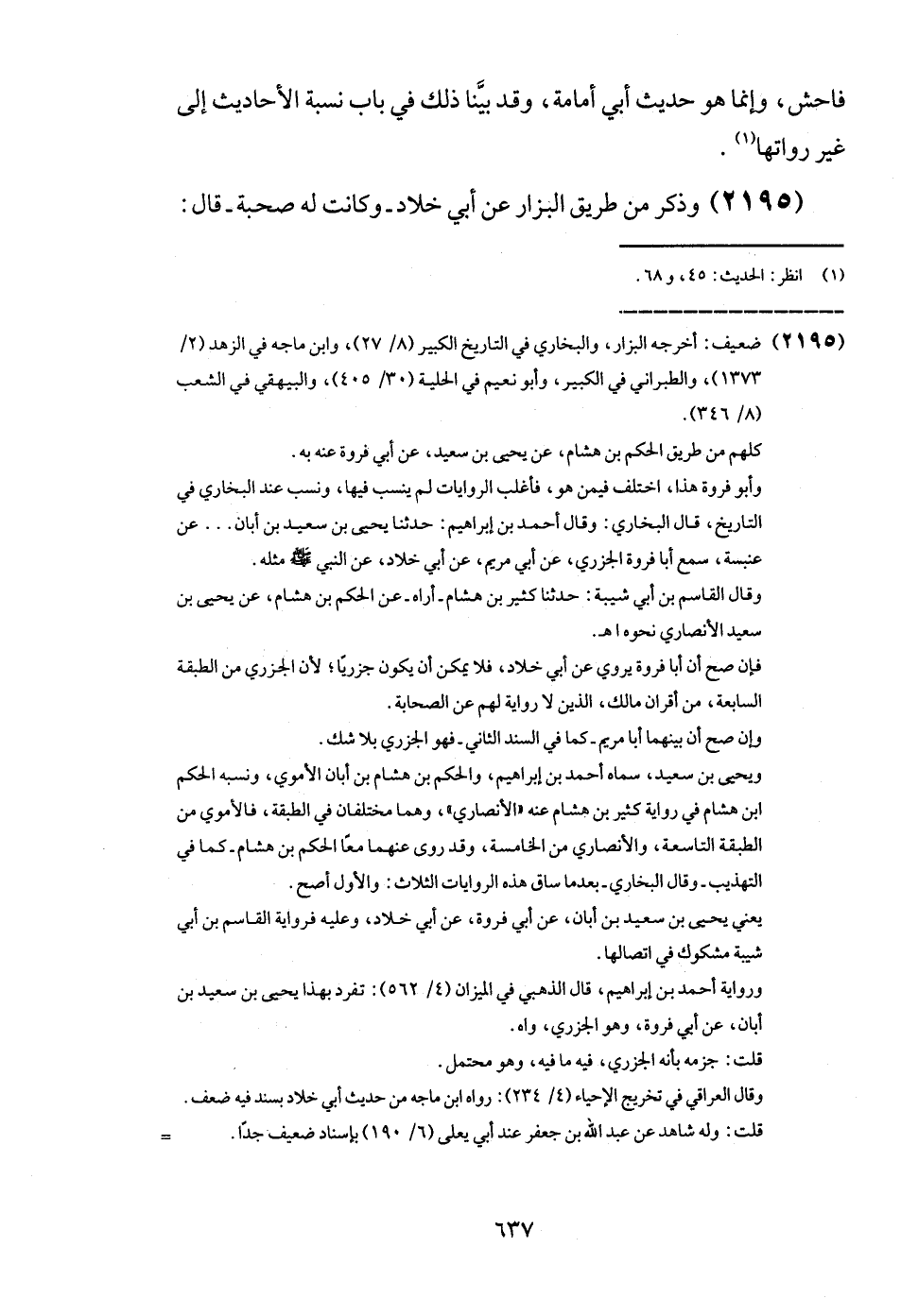 (2195) وَذكر من طَرِيق الْبَزَّار عَن أبي خَلاد - وَكَانَت لَهُ صُحْبَة - قَالَ: