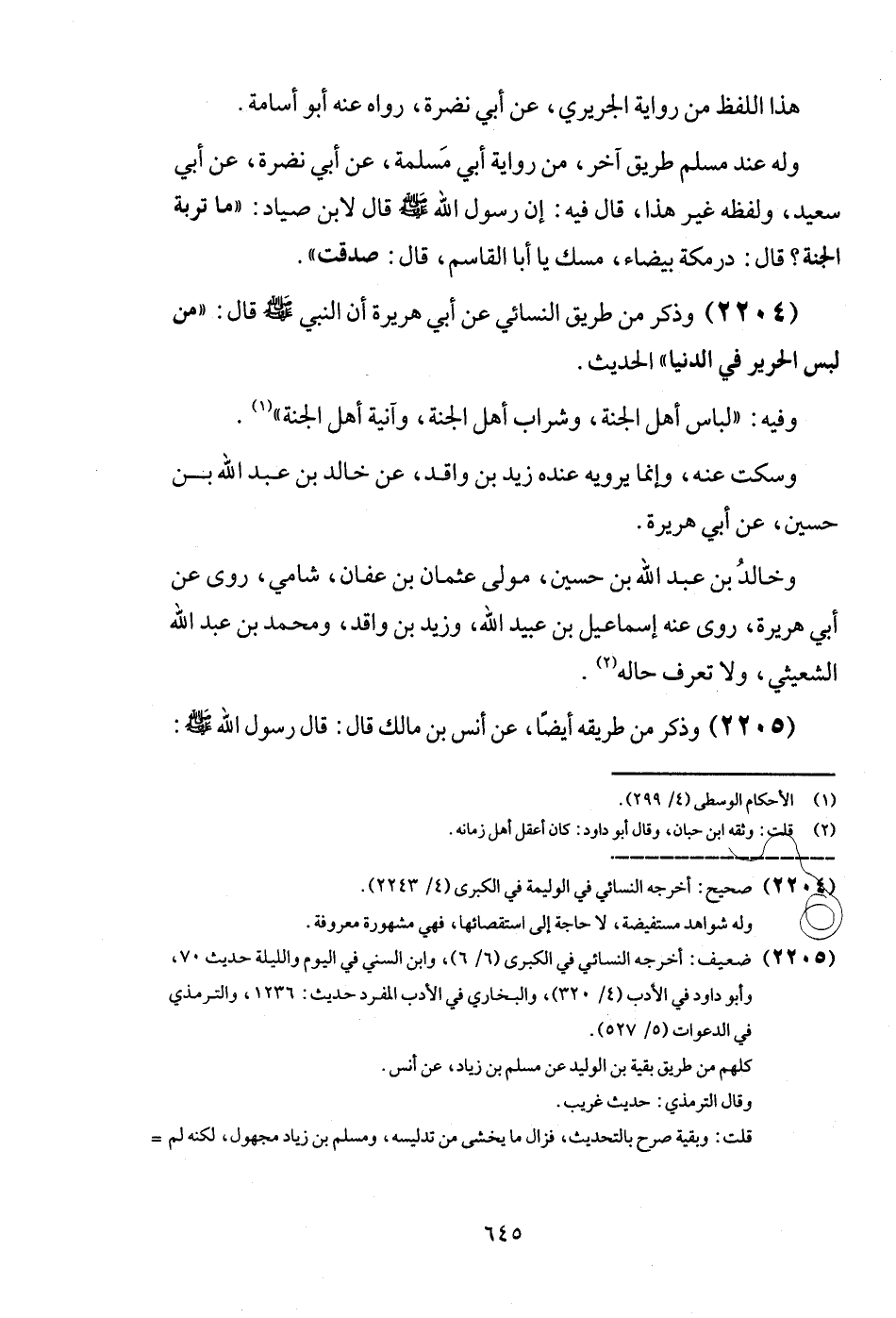 (2204) وَذكر من طَرِيق النَّسَائِيّ عَن أبي هُرَيْرَة أَن النَّبِي - صَلَّى اللَّهُ عَلَيْهِ وَسَلَّم َ - قَالَ: " من لبس الْحَرِير فِي الدُّنْيَا " الحَدِيث.