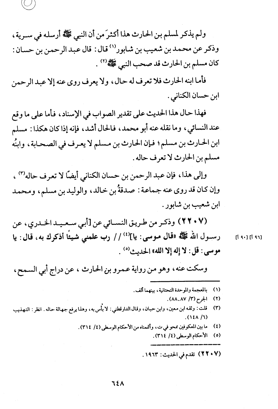 فَهَذَا حَال هَذَا الحَدِيث على تَقْدِير الصَّوَاب فِي الْإِسْنَاد، فَأَما على مَا وَقع عِنْد النَّسَائِيّ، وَمَا نَقله عَنهُ أَبُو مُحَمَّد، فالحال أَشد، فَإِنَّهُ إِذا كَانَ هَكَذَا: مُسلم ابْن الْحَارِث بن مُسلم؛ فَإِن الْحَارِث بن مُسلم لَا يعرف فِي الصَّحَابَة، وَابْنه مُسلم بن الْحَارِث لَا تعرف حَاله.