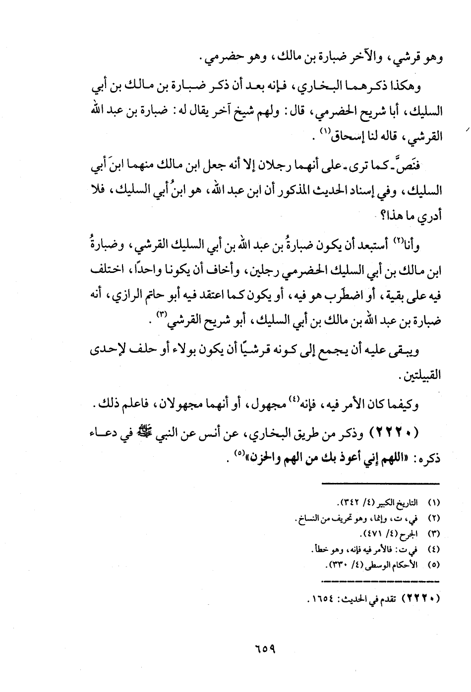وَأَنا أستبعد أَن يكون ضبارة بن عبد الله بن أبي السليك الْقرشِي، وضبارة ابْن مَالك بن أبي السليك الْحَضْرَمِيّ رجلَيْنِ، وأخاف أَن يَكُونَا وَاحِدًا، اخْتلف فِيهِ على بَقِيَّة، أَو اضْطربَ هُوَ فِيهِ، أَو يكون كَمَا اعْتقد فِيهِ أَبُو حَاتِم الرَّازِيّ، أَنه ضبارة بن عبد الله بن مَالك بن أبي السليك، أَبُو شُرَيْح الْقرشِي.
