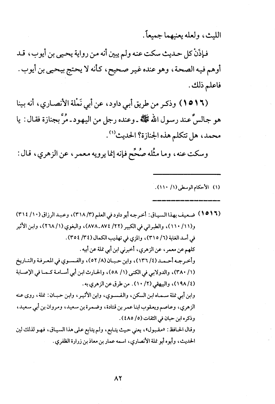 (1516) وَذكر من طَرِيق أبي دَاوُد، عَن أبي نملة الْأنْصَارِيّ، أَنه بَينا هُوَ جَالس عِنْد رَسُول الله - صَلَّى اللَّهُ عَلَيْهِ وَسَلَّم َ - وَعِنْده رجل من الْيَهُود - مر بِجنَازَة فَقَالَ: يَا مُحَمَّد، هَل تَتَكَلَّم هَذِه الْجِنَازَة؟ الحَدِيث.