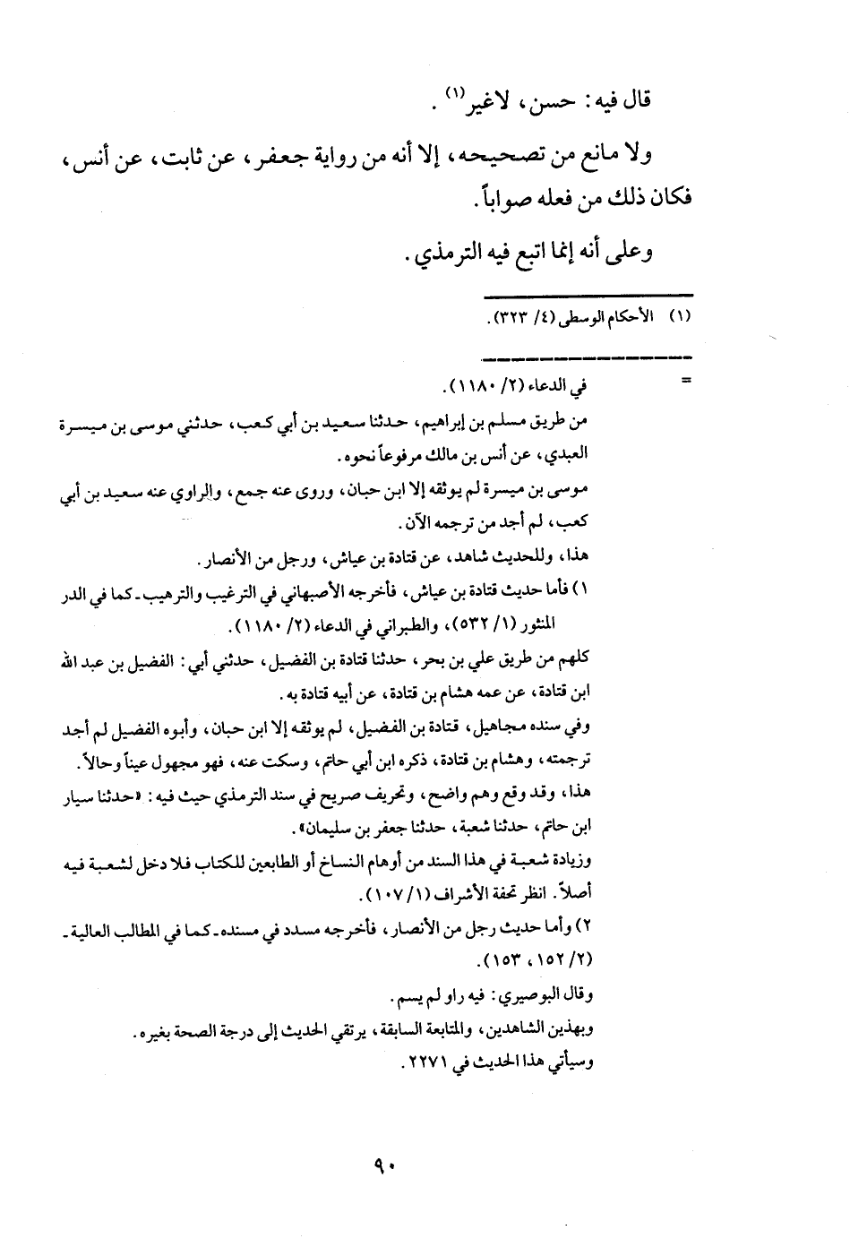 وَلَا مَانع من تَصْحِيحه، إِلَّا أَنه من رِوَايَة جَعْفَر، عَن ثَابت، عَن أنس، فَكَانَ ذَلِك من فعله صَوَابا.