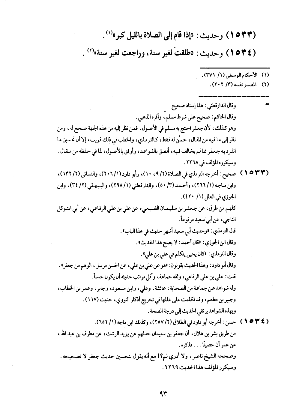 (1534) وَحَدِيث: " طلقت لغير سنة، وراجعت لغير سنة ".