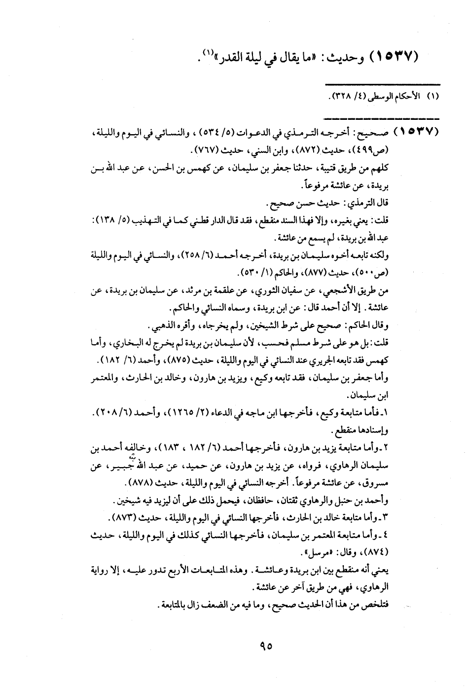 (1537) وَحَدِيث: " مَا يُقَال فِي لَيْلَة الْقدر ".