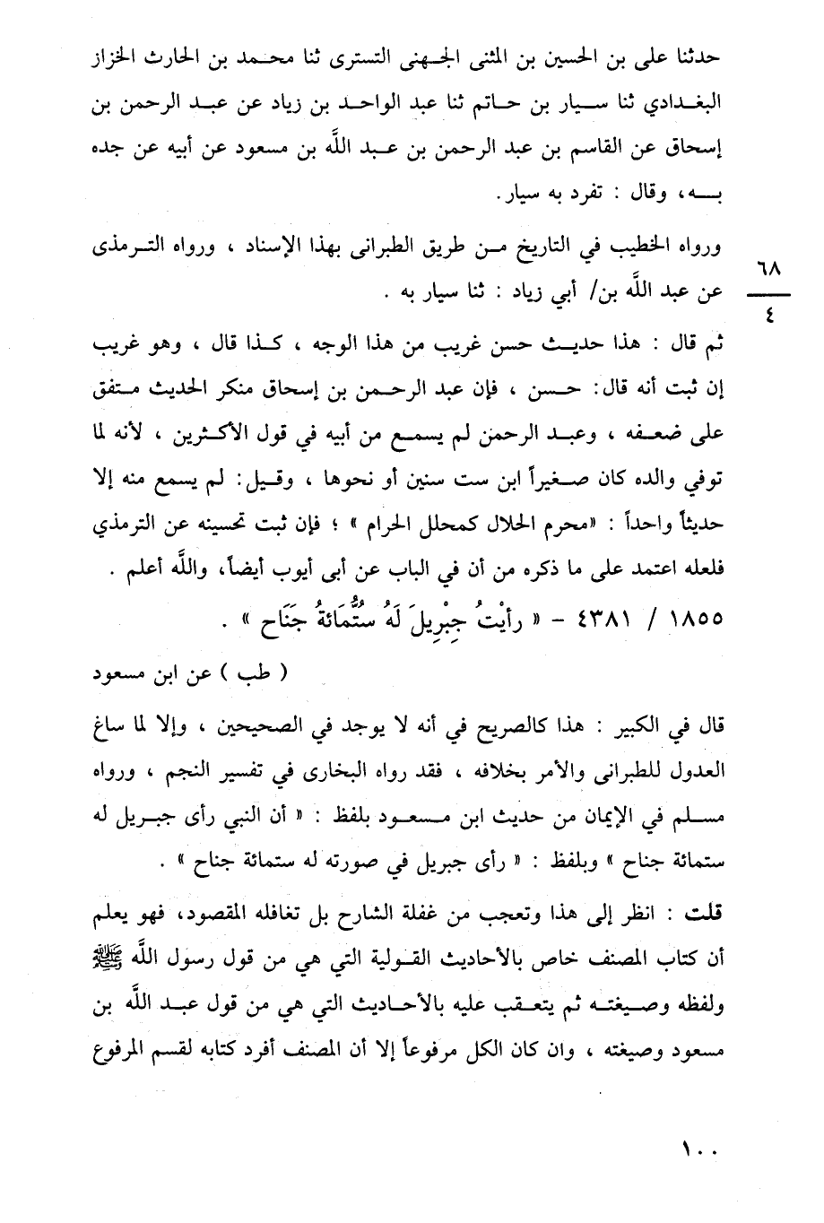 1855/ 4381 - "رأيْتُ جِبْرِيلَ لَهُ سُتُّمَائةُ جَنَاح".