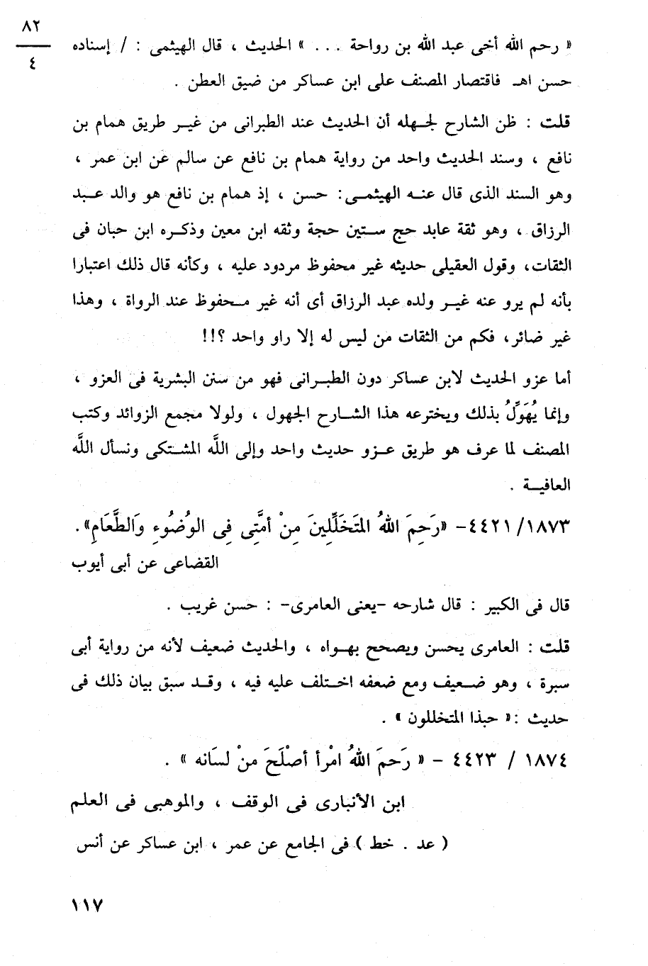 1873/ 4421 - "رَحِمَ اللَّهُ المتَخَلِّلِينَ مِنْ أمَّتِى فِى الوُضُوءِ وَالطَّعَامِ".