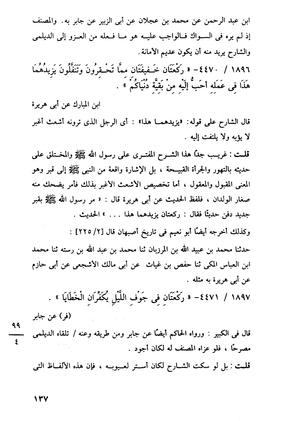 1897/ 4471 - "رَكْعَتَانِ فِي جَوْفِ اللَّيْلِ يُكَفِّرَانِ الْخَطَايَا".