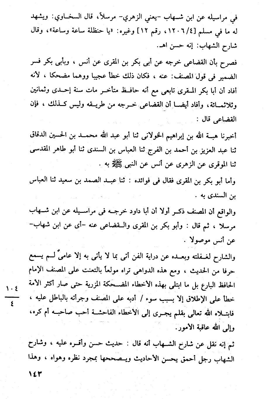 والواقع أن المصنف ذكر أولا أن أبا داود خرجه في مراسيله عن ابن شهاب مرسلا، ثم قال: وأبو بكر بن المقرى والقضاعى عنه -أى عن ابن شهاب- عن أنس موصولا.