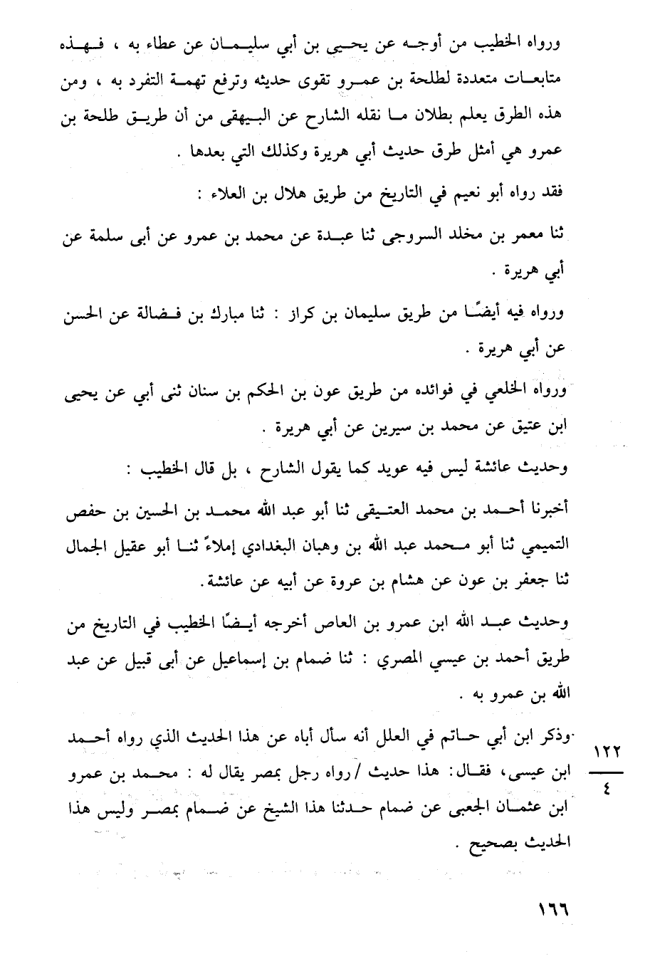 ورواه الخطيب من أوجه عن يحيى بن أبي سليمان عن عطاء به، فهذه متابعات متعددة لطلحة بن عمرو تقوى حديثه وترفع تهمة التفرد به، ومن هذه الطرق يعلم بطلان ما نقله الشارح عن البيهقى من أن طريق طلحة بن عمرو هي أمثل طرق حديث أبي هريرة وكذلك التي بعدها.