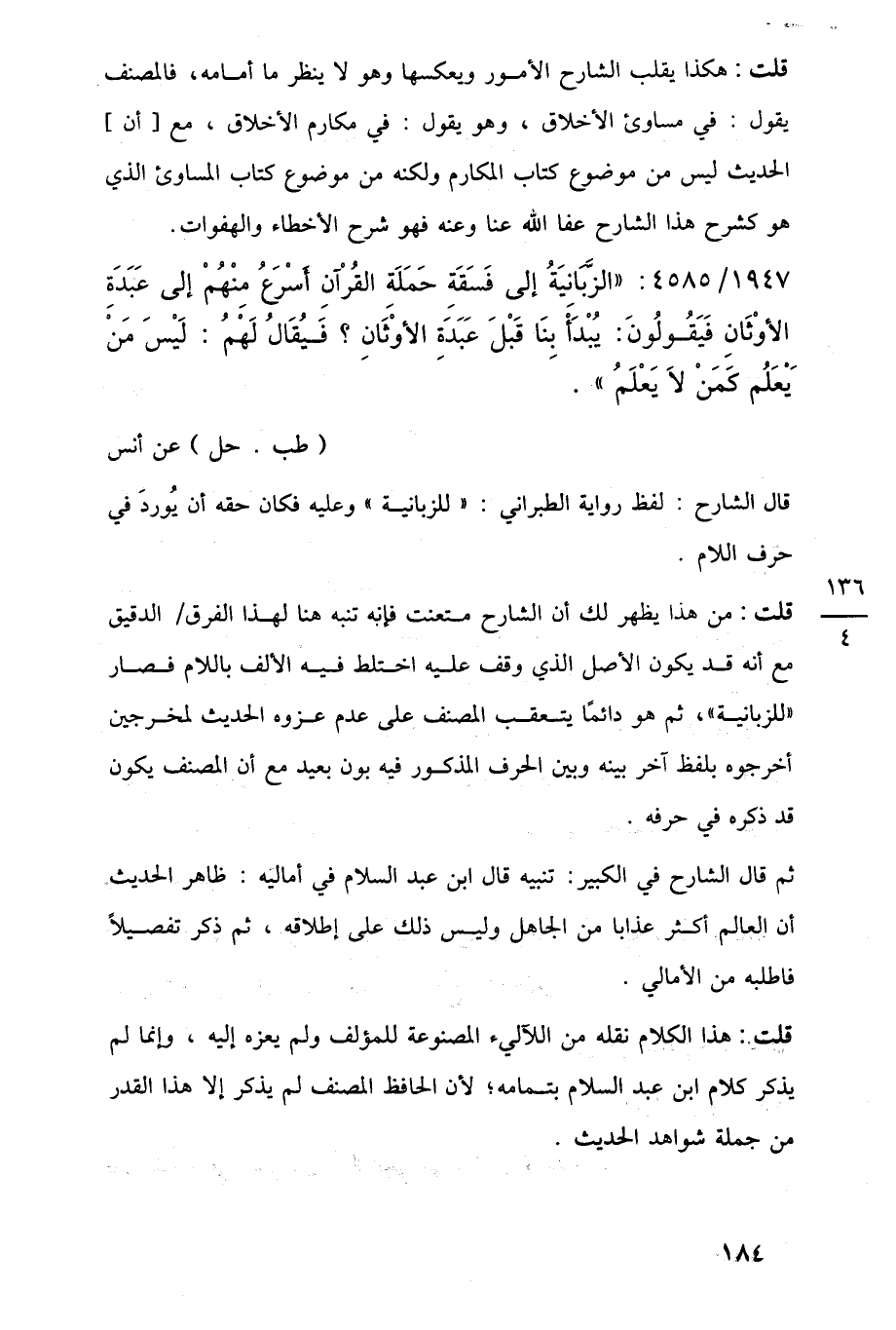 قلت: من هذا يظهر لك أن الشارح متعنت فإنه تنبه هنا لهذا الفرق الدقيق مع أنه قد يكون الأصل الذي وقف عليه اختلط فيه الألف باللام فصار "للزبانية"، ثم هو دائمًا يتعقب المصنف على عدم عزوه الحديث لمخرجين أخرجوه بلفظ آخر بينه وبين الحرف المذكور فيه بون بعيد مع أن المصنف يكون قد ذكره في حرفه.