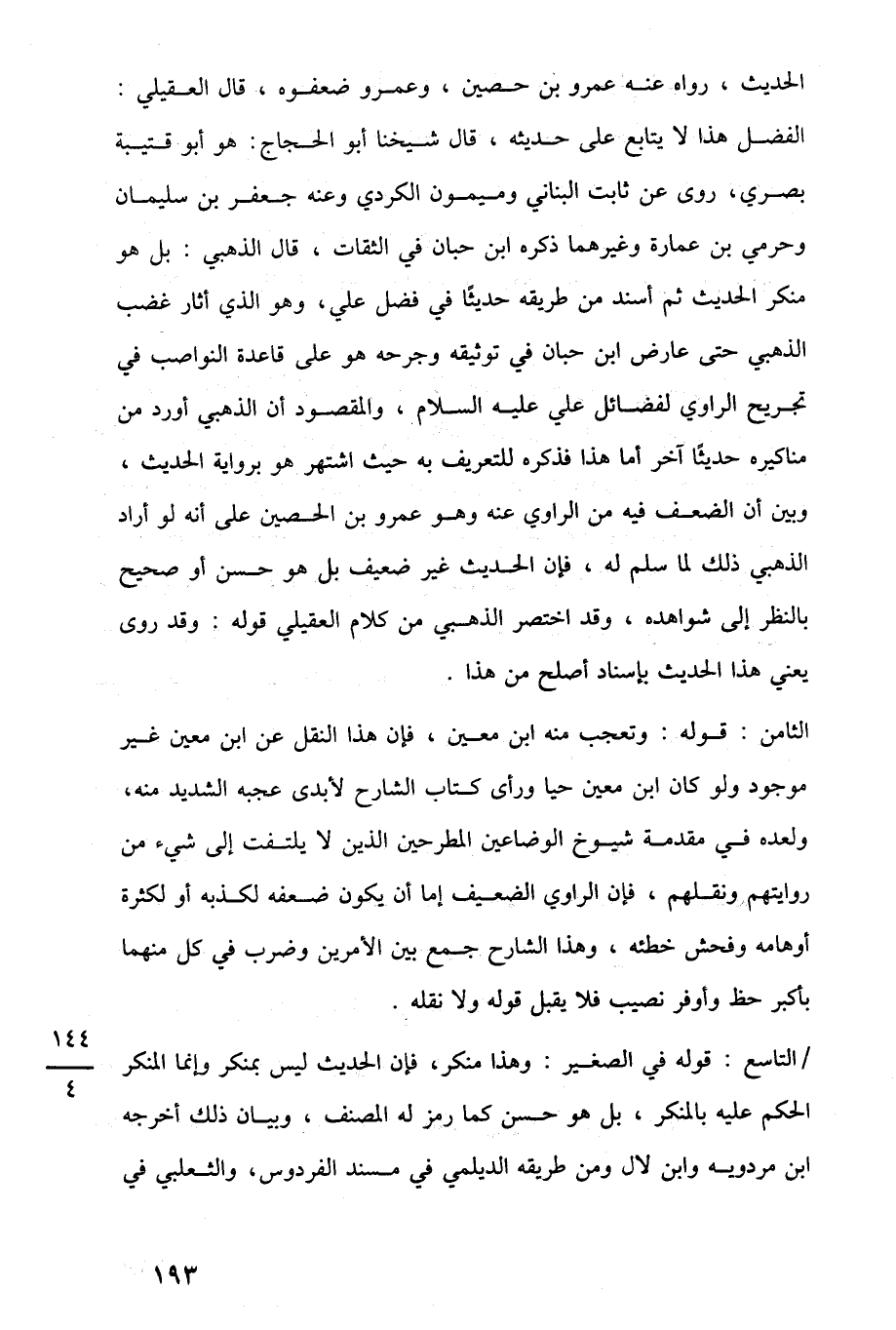 الثامن: قوله: وتعجب منه ابن معين، فإن هذا النقل عن ابن معين غير موجود ولو كان ابن معين حيا ورأى كتاب الشارح لأبدى عجبه الشديد منه، ولعده في مقدمة شيوخ الوضاعين المطرحين الذين لا يلتفت إلى شيء من روايتهم ونقلهم، فإن الراوى الضعيف إما أن يكون ضعفه لكذبه أو لكثرة أوهامه وفحش خطئه، وهذا الشارح جمع بين الأمرين وضرب في كل منهما بأكبر حظ وأوفر نصيب فلا يقبل قوله ولا نقله.