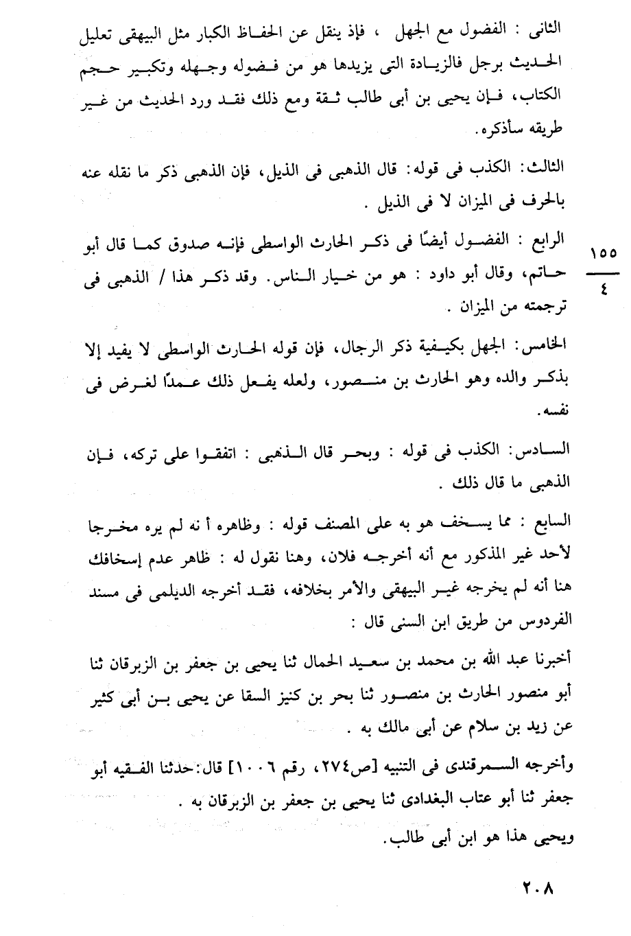 الثانى: الفضول مع الجهل، فإذ ينقل عن الحفاظ الكبار مثل البيهقى تعليل الحديث برجل فالزيادة التي يزيدها هو من فضوله وجهله وتكبير حجم الكتاب، فإن يحيى بن أبي طالب ثقة ومع ذلك فقد ورد الحديث من غير طريقه سأذكره.