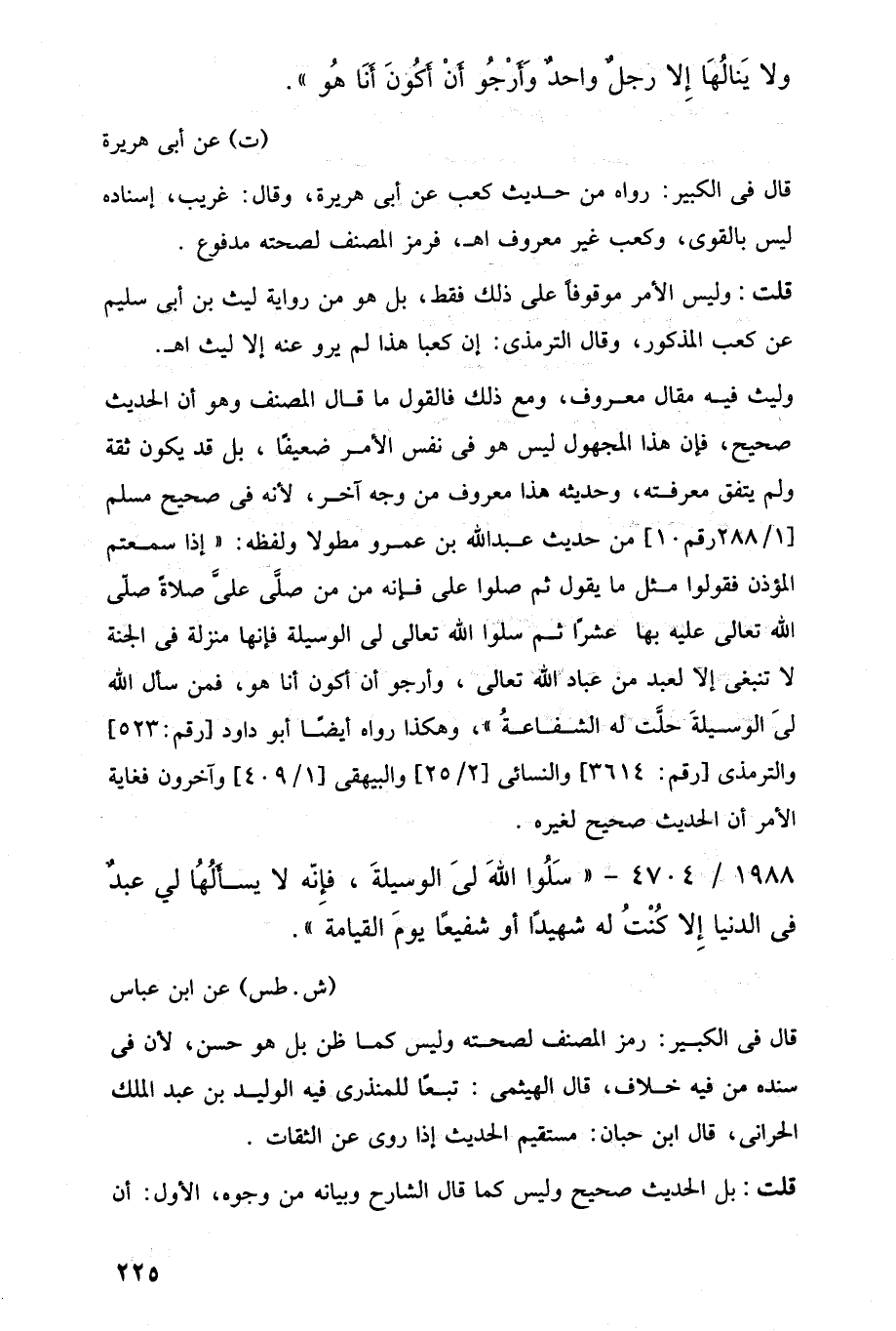 1988/ 4704 - "سَلُوا اللَّه ليَ الوسيلةَ، فإِنَّه لا يسأَلُهُا لي عبدٌ في الدنيا إِلا كُنْتُ له شهيدًا أو شفيعًا يومَ القيامة".