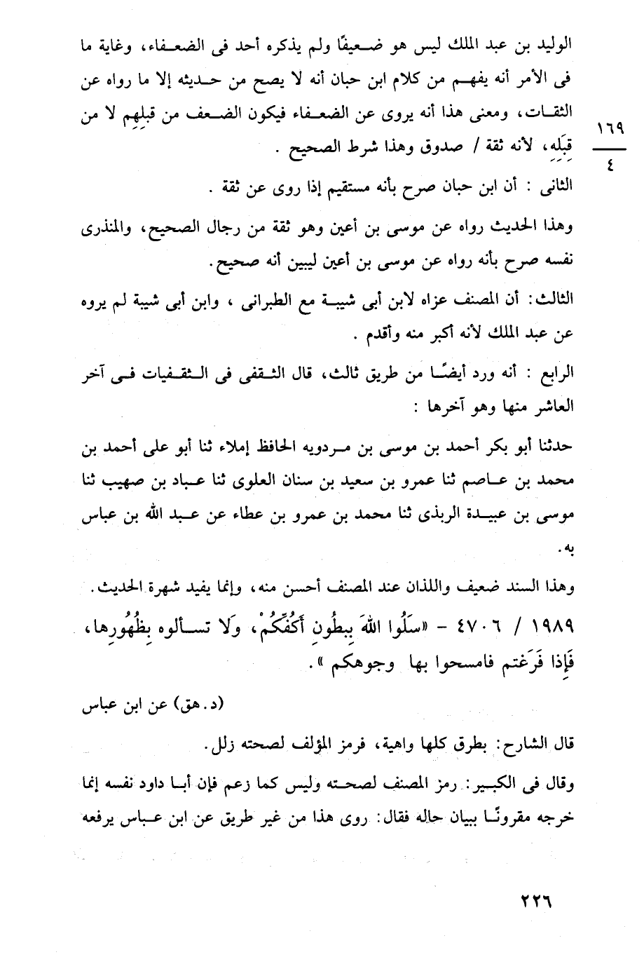 الوليد بن عبد الملك ليس هو ضعيفًا ولم يذكره أحد في الضعفاء، وغاية ما في الأمر أنه يفهم من كلام ابن حبان أنه لا يصح من حديثه إلا ما رواه عن الثقات، ومعنى هذا أنه يروى عن الضعفاء فيكون الضعف من قبلِهِم لا من قِبَلِهِ، لأنه ثقة صدوق وهذا شرط الصحيح.