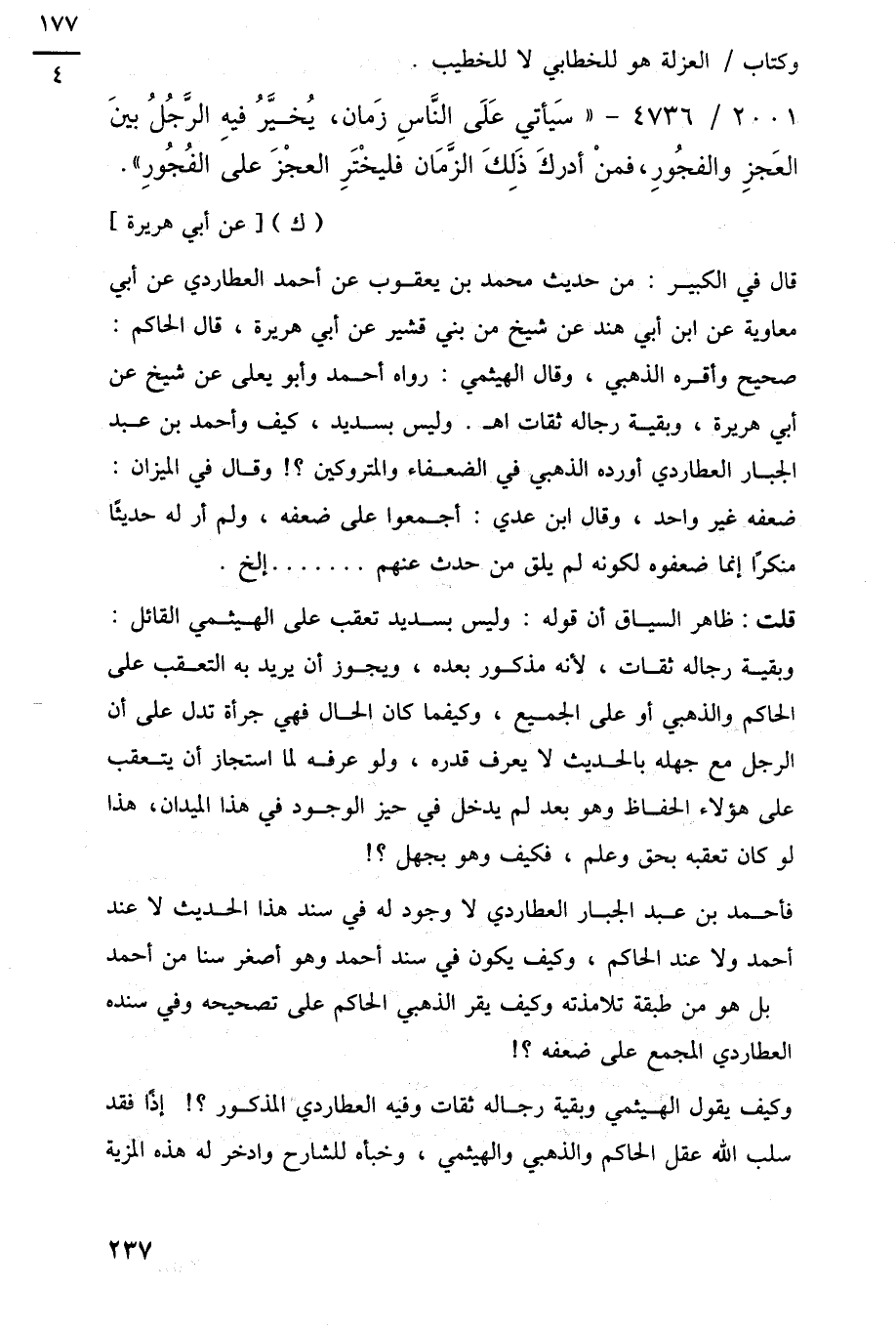 وكيف يقول الهيثمى وبقية رجاله ثقات وفيه العطاردى المذكور؟! إذًا فقد سلب اللَّه عقل الحاكم والذهبي والهيثمي، وخبأه للشارح وادخر له هذه المزية