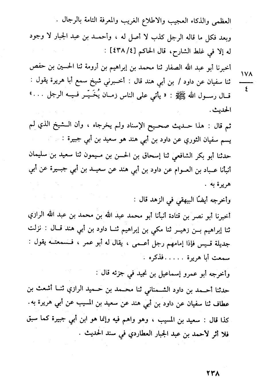 حدثنا أحمد بن داود الشمناني ثنا محمد بن حميد الرازى ثنا أشعث بن عطاف ثنا سفيان عن داود بن أبي هند عن سعيد بن المسيب عن أبي هريرة به. كذا قال: سعيد بن المسيب، وهو واهم فيه وإنما هو ابن أبي جبيرة كما سبق فلا أثر لأحمد بن عبد الجبار العطاردى في سند الحديث.