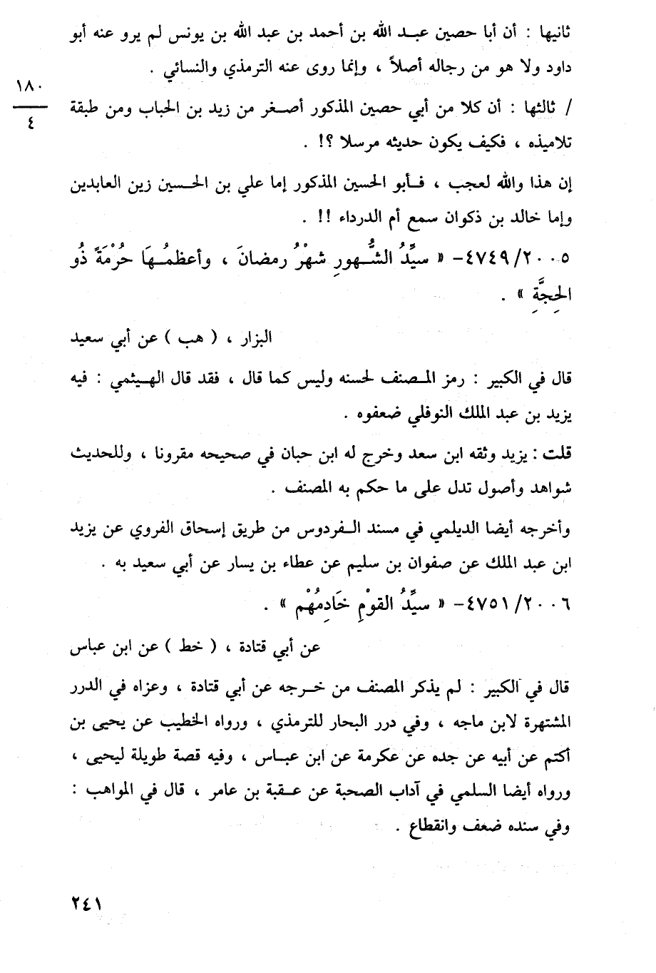 إن هذا واللَّه لعجب، فأبو الحسين المذكور إما على بن الحسين زين العابدين وإما خالد بن ذكوان سمع أم الدرداء!!.