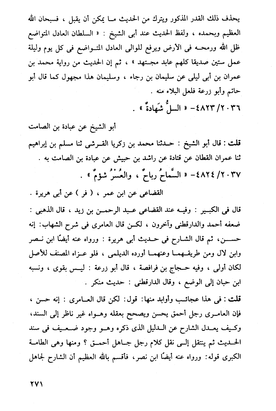 قلت: في هذا عجائب وأوابد منها: قول: لكن قال العامرى: إنه حسن، فإن العامرى رجل أحمق يحسن ويصحح بعقله وهواه غير ناظر إلى السند، وكيف يعدل الشارح عن الدليل الذي ذكره وهو وجود ضعيف في سند الحديث ثم ينتقل إلى نقل كلام رجل جاهل أحمق؟ ومنها وهى الطامة الكبرى قوله: ورواه عنه أيضًا ابن نصر، فأقسم باللَّه العظيم أن الشارح لجاهل